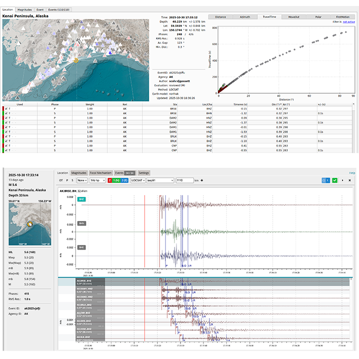 You’ll notice a new look to maps and graphs that support our science stories (Figure 2), for example in our October 2025 coverage of a widely felt earthquake in the Kenai Peninsula. If you come visit us in Fairbanks, at the Geophysical Institute, we can show off our new command center (Figure 3). Most importantly, we are now poised atop a stronger foundation to rapidly assess and share seismic information, and we look forward to sharing the new capabilities as we implement them in the future.