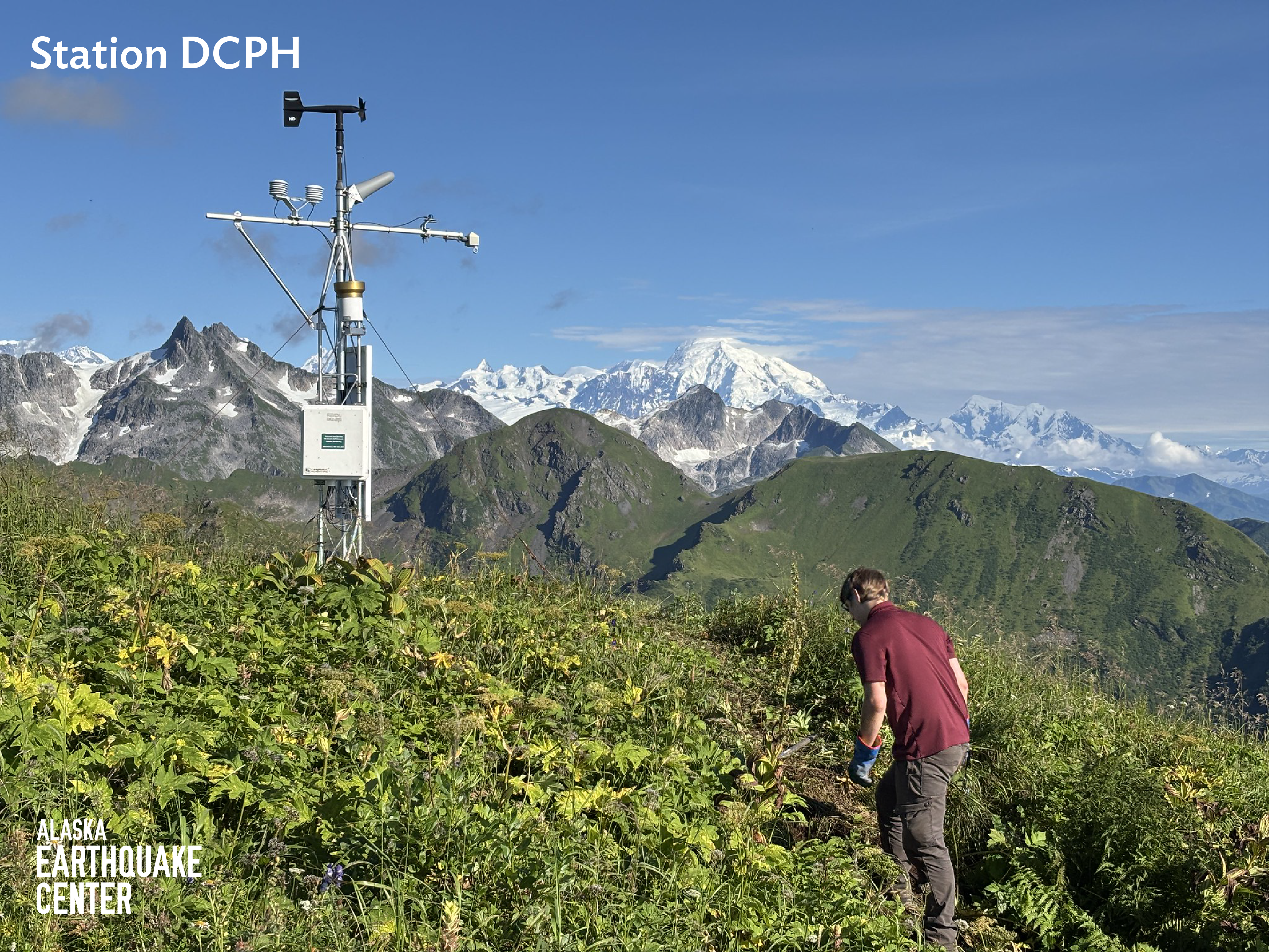 Getting the Deception Hills (DCPH) station (Figure 5) back online for the first time in six years was a big win, as it fills an important network gap. This took several days of timing the weather and good old-fashioned hard labor, “burying our cables so deep the bears will never get to them again,” field engineer Ethan Berkeland reminisced.