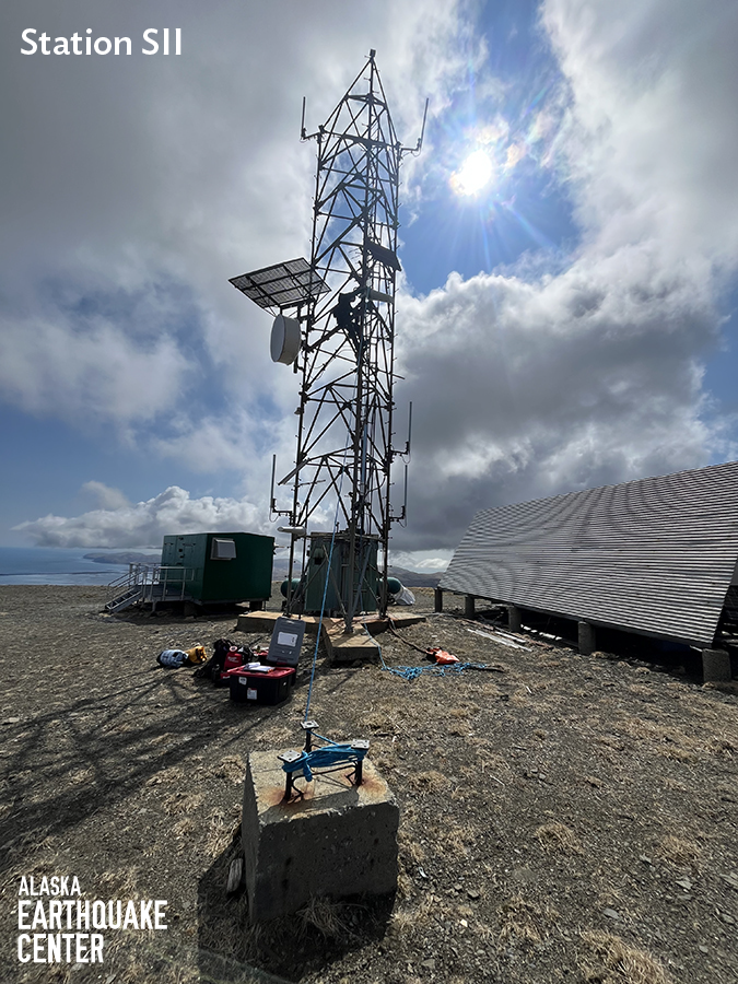 The field team also brought the Chernabura Island station (CHN) back online. Both CHI and CHN are located offshore of the Alaska Peninsula south of Kodiak, and are crucial for measuring earthquakes near Sand Point. Several magnitude 7+ earthquakes have rattled this region in recent years.