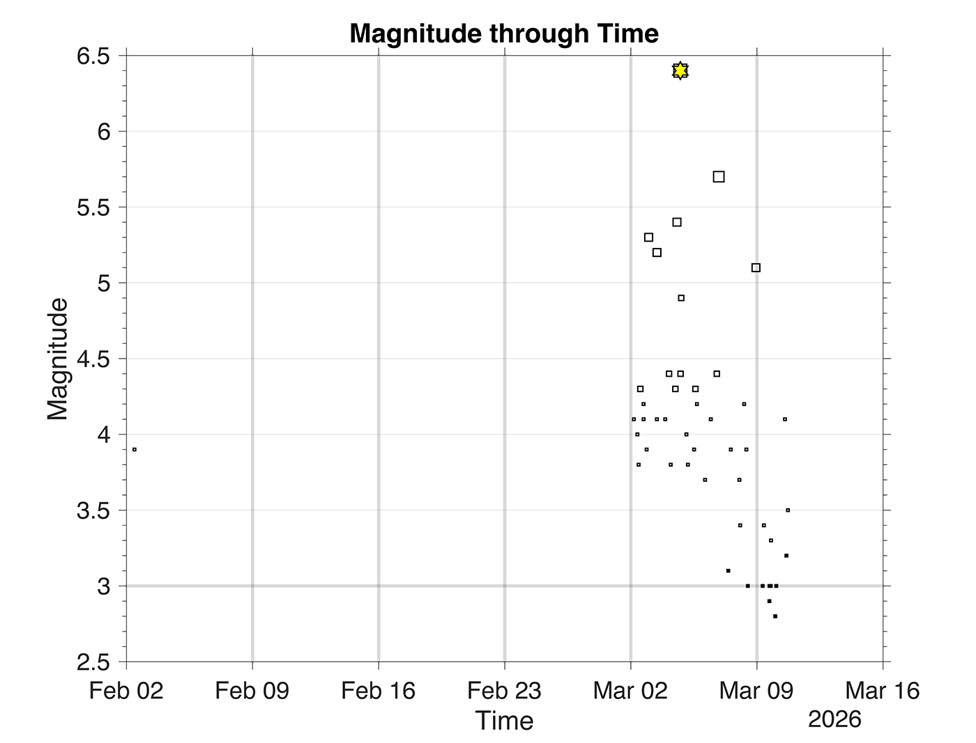 Another interesting clue is the timing of the earthquakes. Several magnitude 5 events happened before the magnitude 6.4 earthquake. That pattern suggests they may have been foreshocks, followed by the larger mainshock and the aftershocks that continue today.